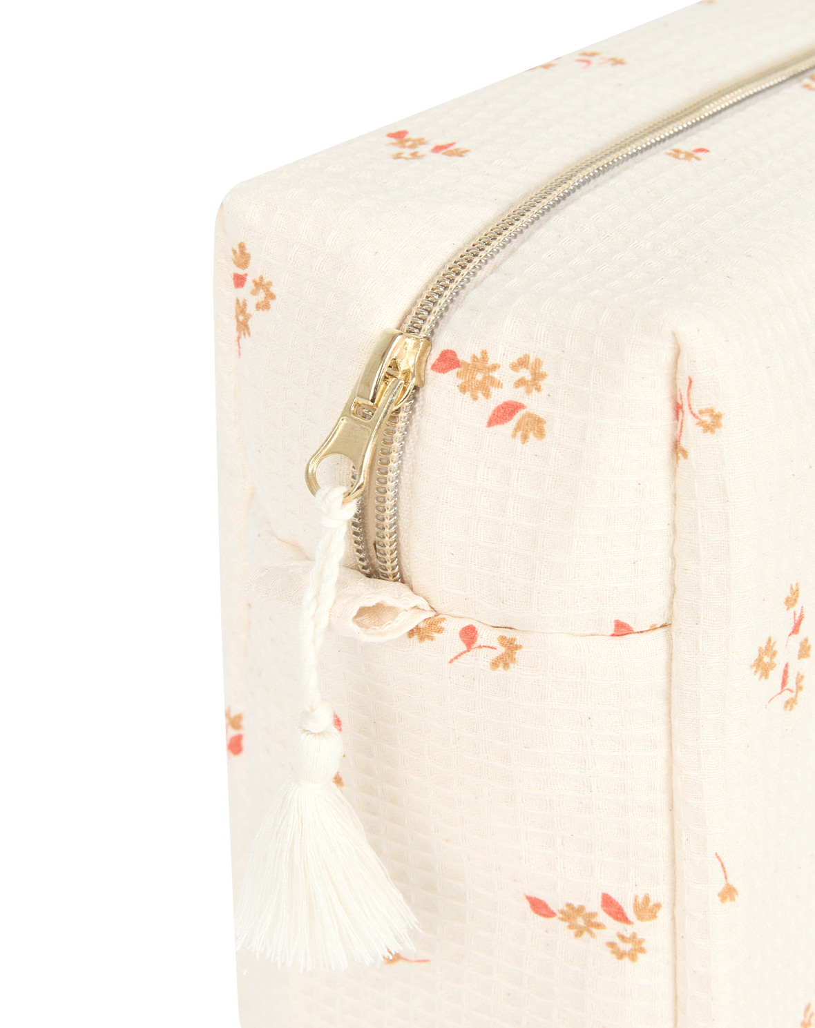 Large et pratique, la trousse de toilette Diva s'habille de nid d’abeille et d'une doublure intérieure imperméable. Mettez-y vos affaires de toilette ou autres accessoires de bébé.